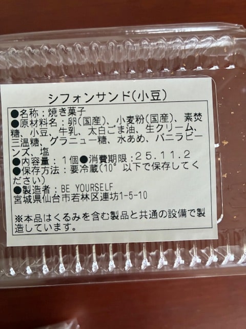 こちらは、粒の小豆に生クリームのサンド。小豆と生クリームの程よい甘さにフワフワのシフォンケーキがおいしい!