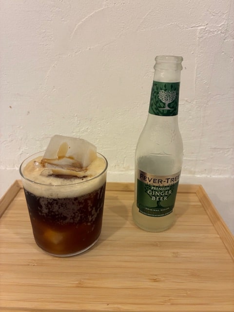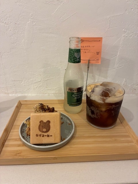 お茶をしていたら、暗くなってきたので、そのままお次はお酒を楽しみたい!友達はビールを。私は、気になっていたエスプレッソのジンジャービア割り。これ実はノンアルコールなんです。ジンジャー強めでおいしいー。香りもよくスッキリ。ハマりそうなおいしさです。