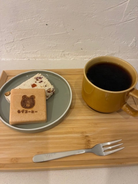 コーヒーはその場で引いてくれた入れたてを飲めます。もちろんおいしい!
