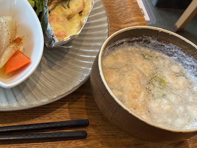 今回、これなんだろう?と分からなかったので、店の方に尋ねたのは、お味噌汁。