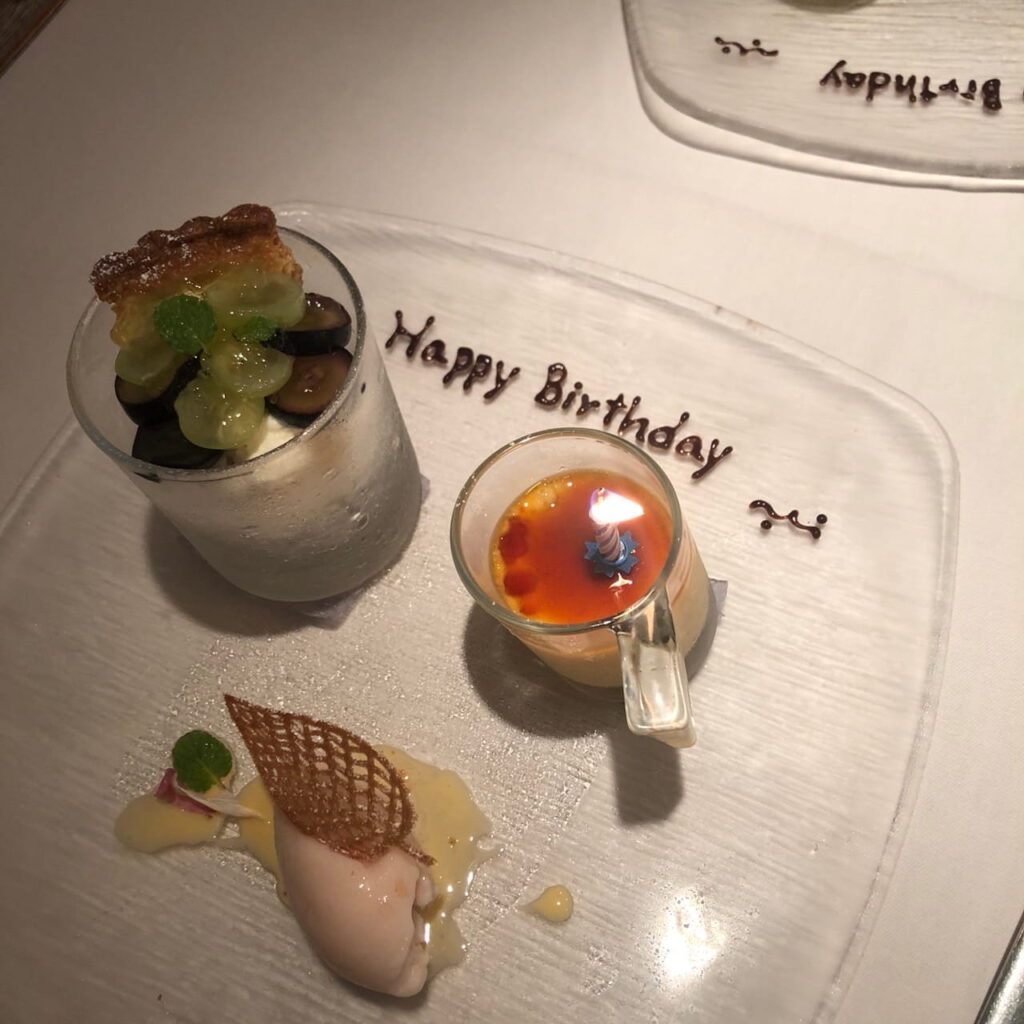 ちなみにこちらの写真は、別の日ですが、お友達のお誕生日のため、予約の際に伝えるとこんな素敵なメッセージプレートを出してくれました!