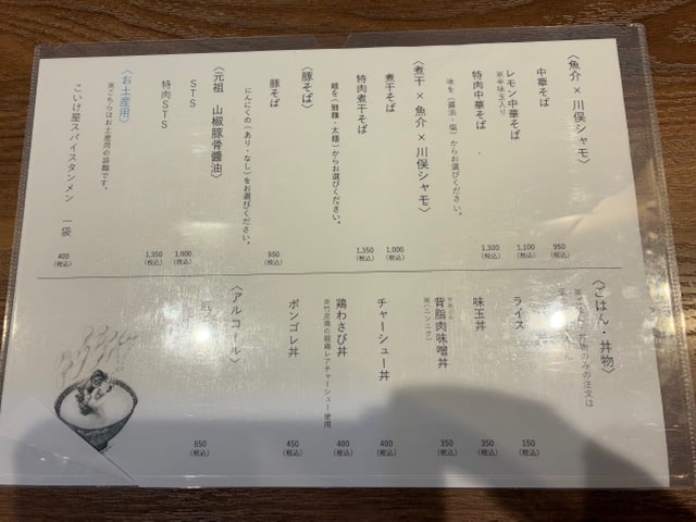 他の方が頼んでいた川俣シャモ中華そばも気になる。他にもまぜそばなんかもおいしそう。ボンゴレ丼なんかのごはんものも気になるな~