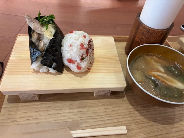 少しして、注文したおにぎりにみそ汁がきました。おいしそう~♪
