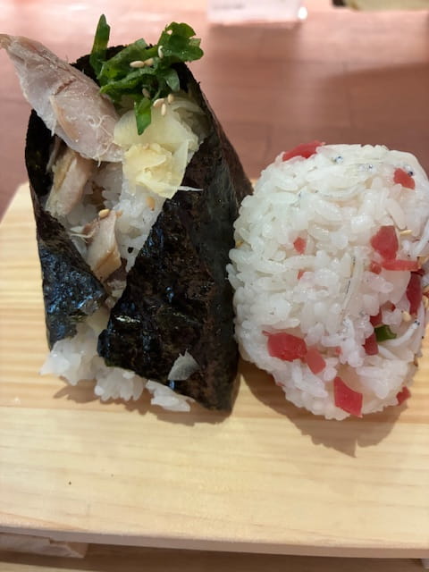 ちょうど座っている目の前でおにぎりを握るのが見えたので、眺めていると、手早くおにぎりを次から次へと握っていました。まさに職人技!