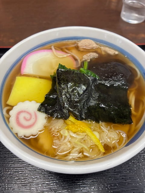 最後は、個人的に一番好きな「おかめ(おかめ五目)」です。鶏肉にかまぼこ、甘めのかまぼこ、なると、しいたけ、ほうれん草、たけのこなどの入ったお蕎麦です!これこれ!私が、一番頼むのはこれです。安定のおいしさでした。